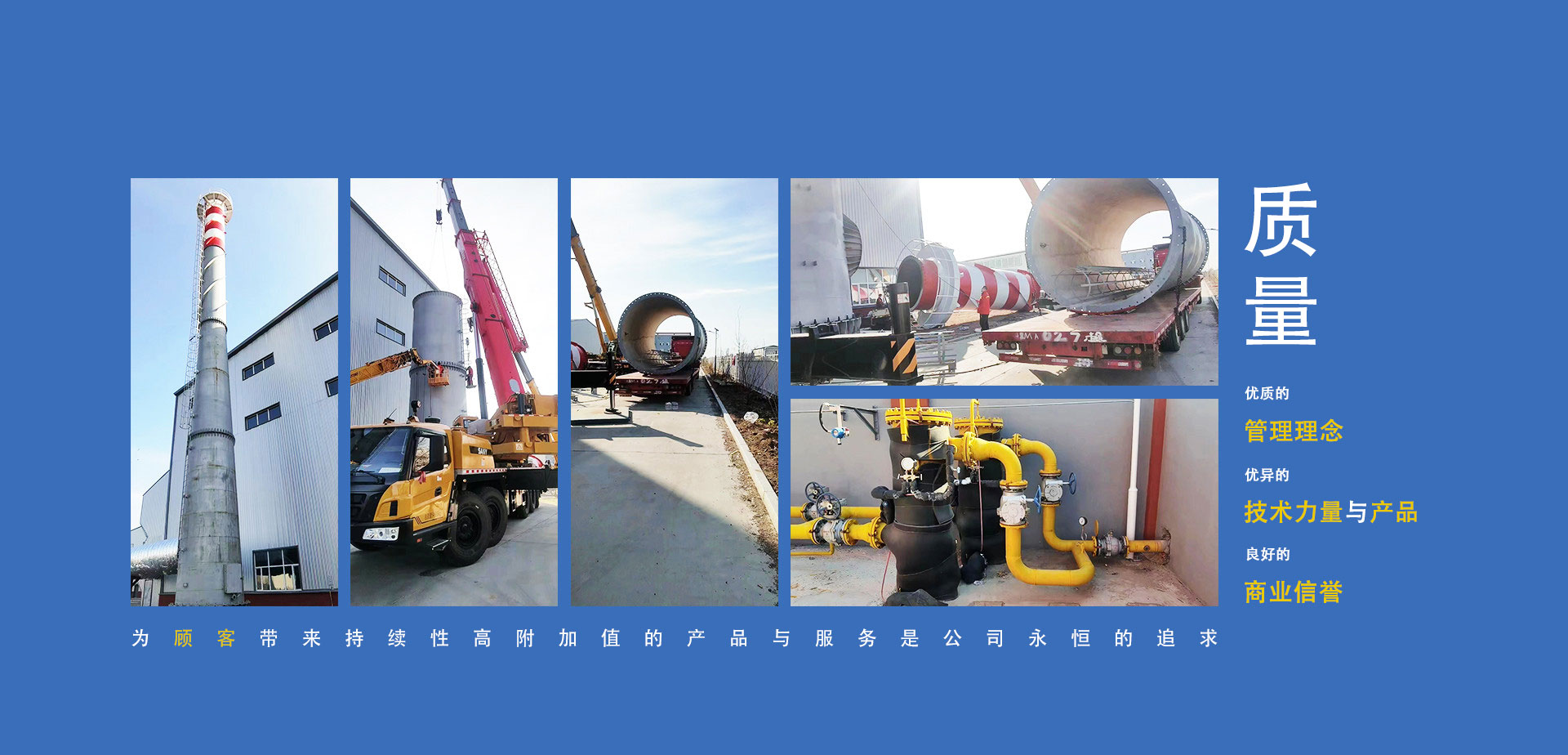公司制定了“以質(zhì)量求生存、以管理求發(fā)展、以服務(wù)增信譽(yù)”的質(zhì)量方針。通過了質(zhì)量管理體系、環(huán)境管理體系、職業(yè)健康安全管理體系、企業(yè)信用評價(jià)管理體系(AAA級)、五星級售后服務(wù);取得了D1、D2級壓力容器制造生產(chǎn)許可資質(zhì),壓力管道元件制造生產(chǎn)許可資質(zhì);黑龍江省高新技術(shù)企業(yè)。